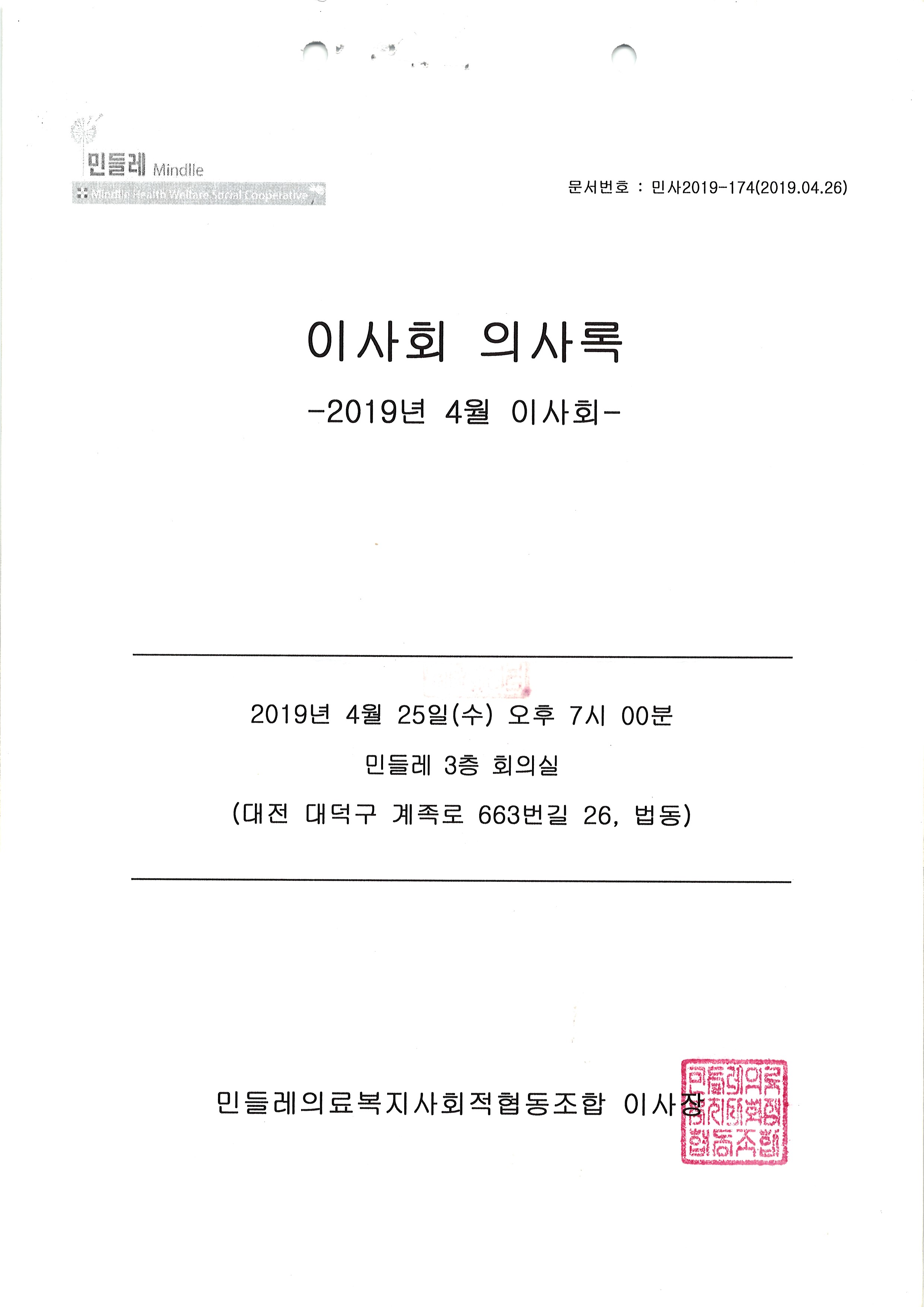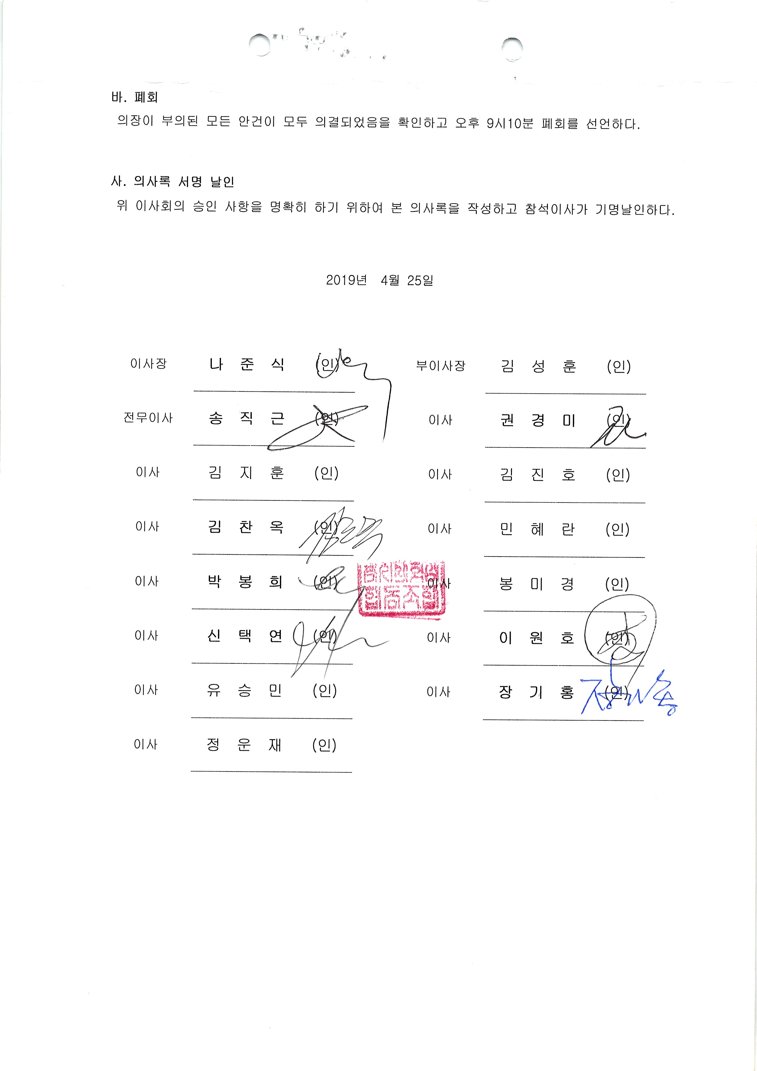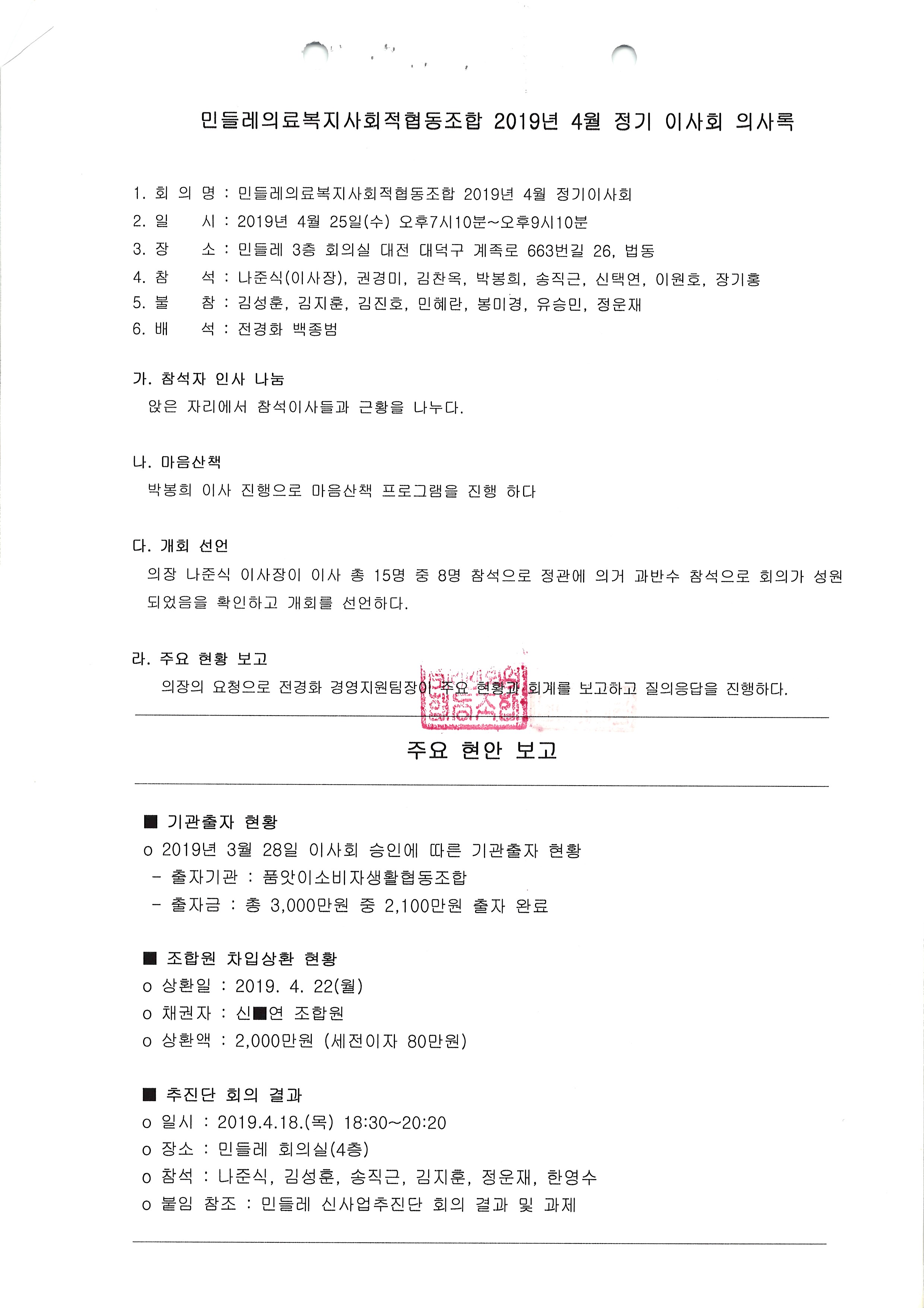 [2019-04] 정기이사회 결과보고