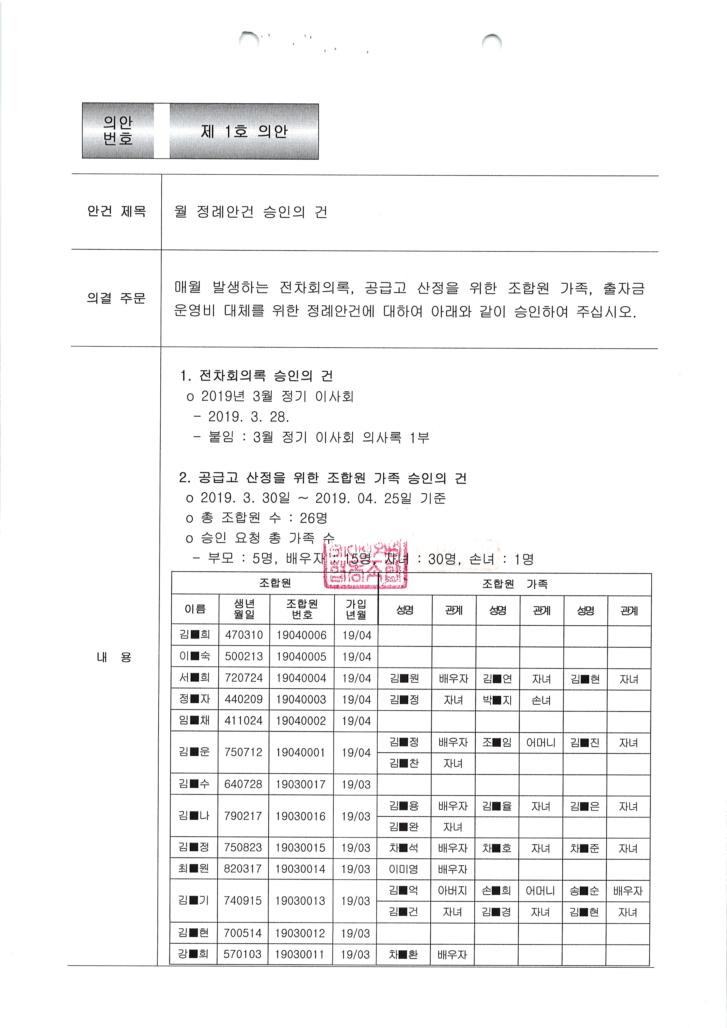 [2019-03] 정기이사회 결과보고