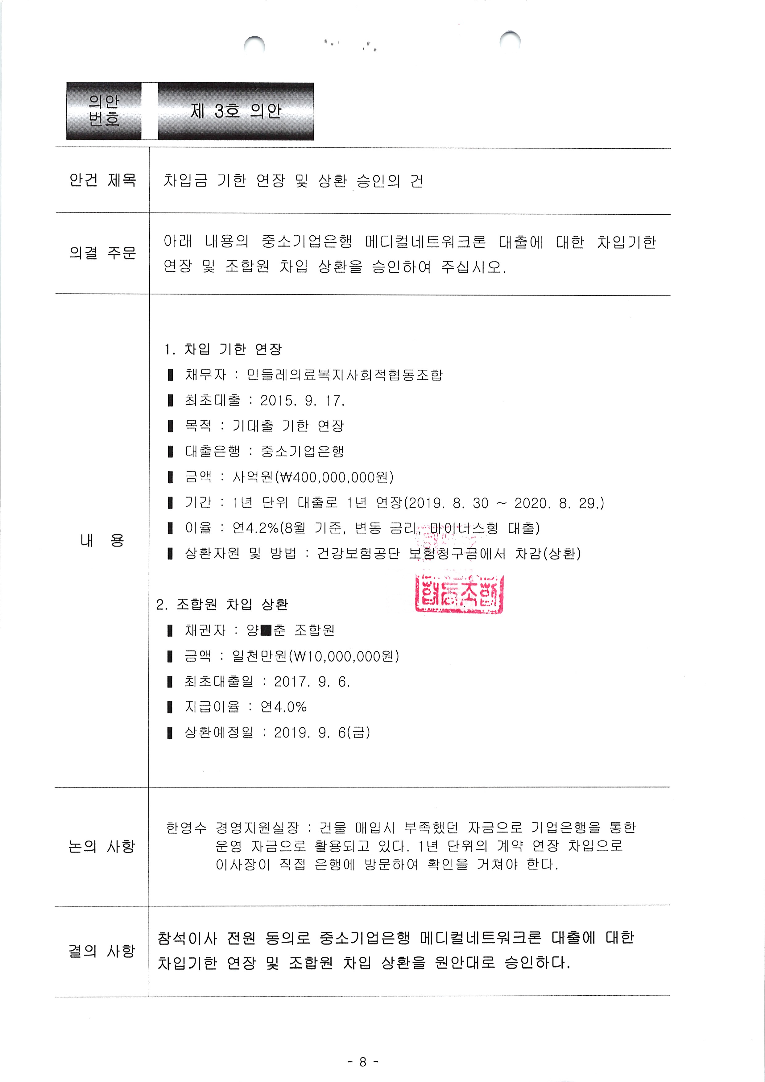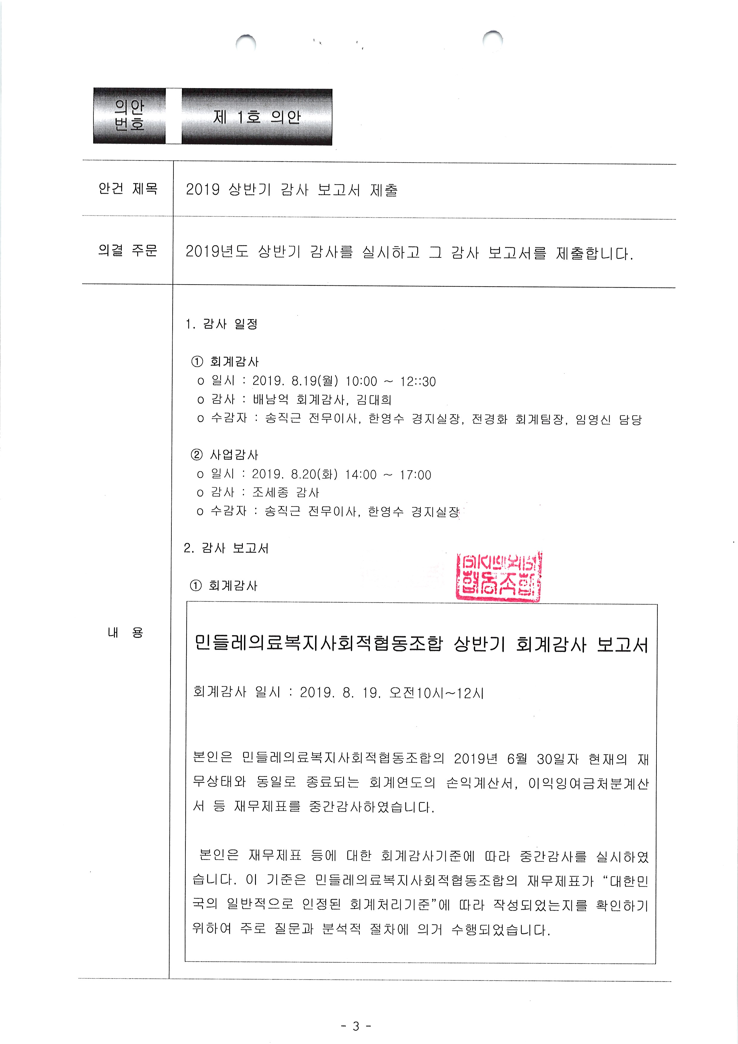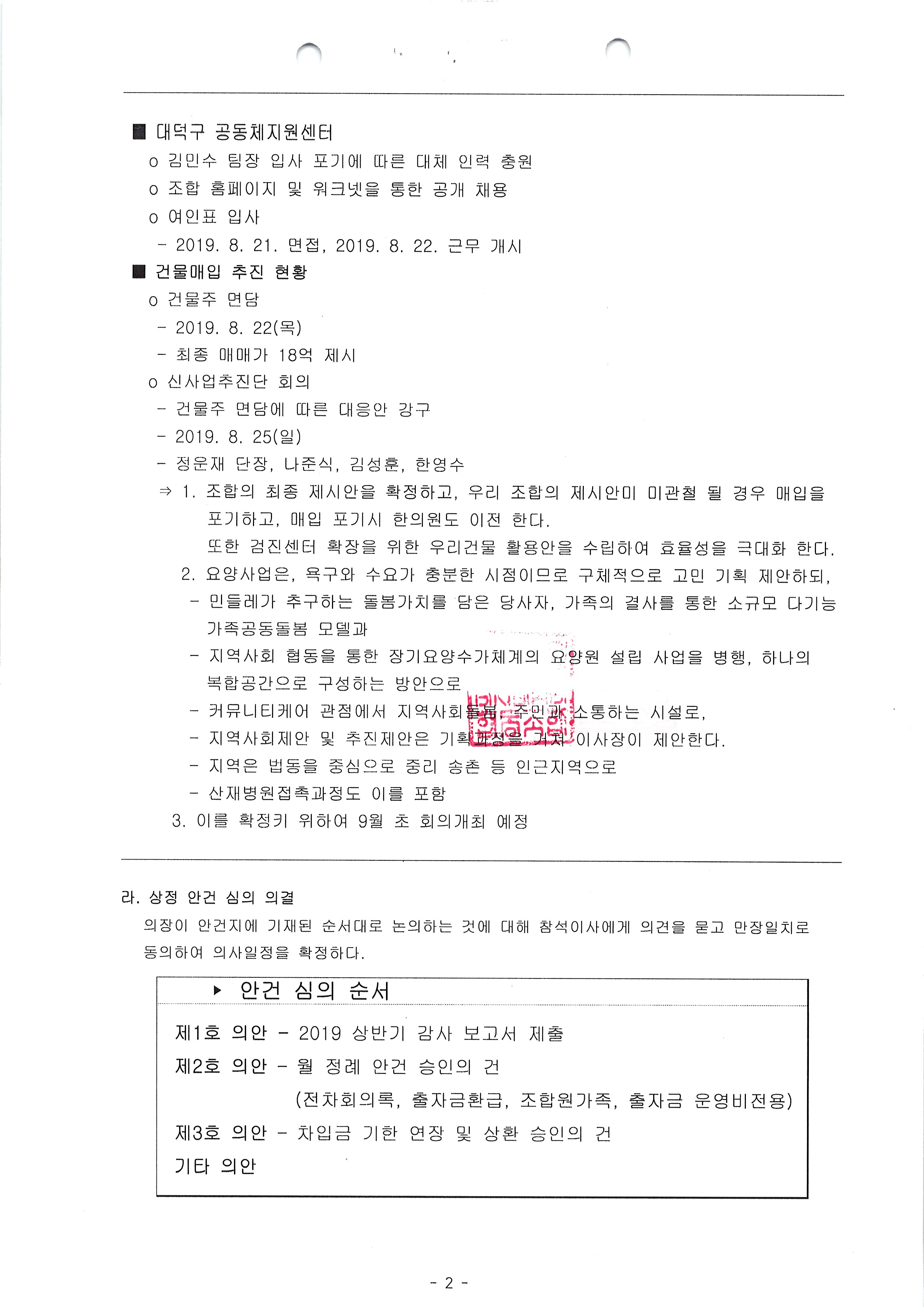 [2019-08] 정기이사회 결과보고