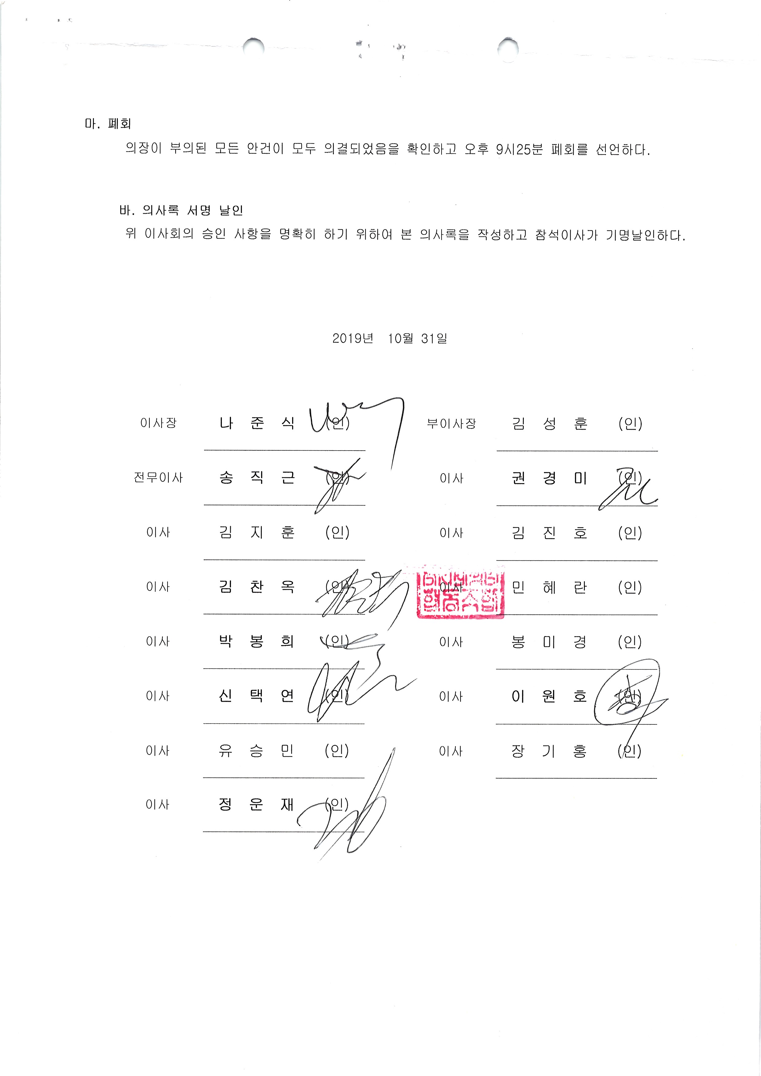 [2019-10] 정기이사회 결과보고