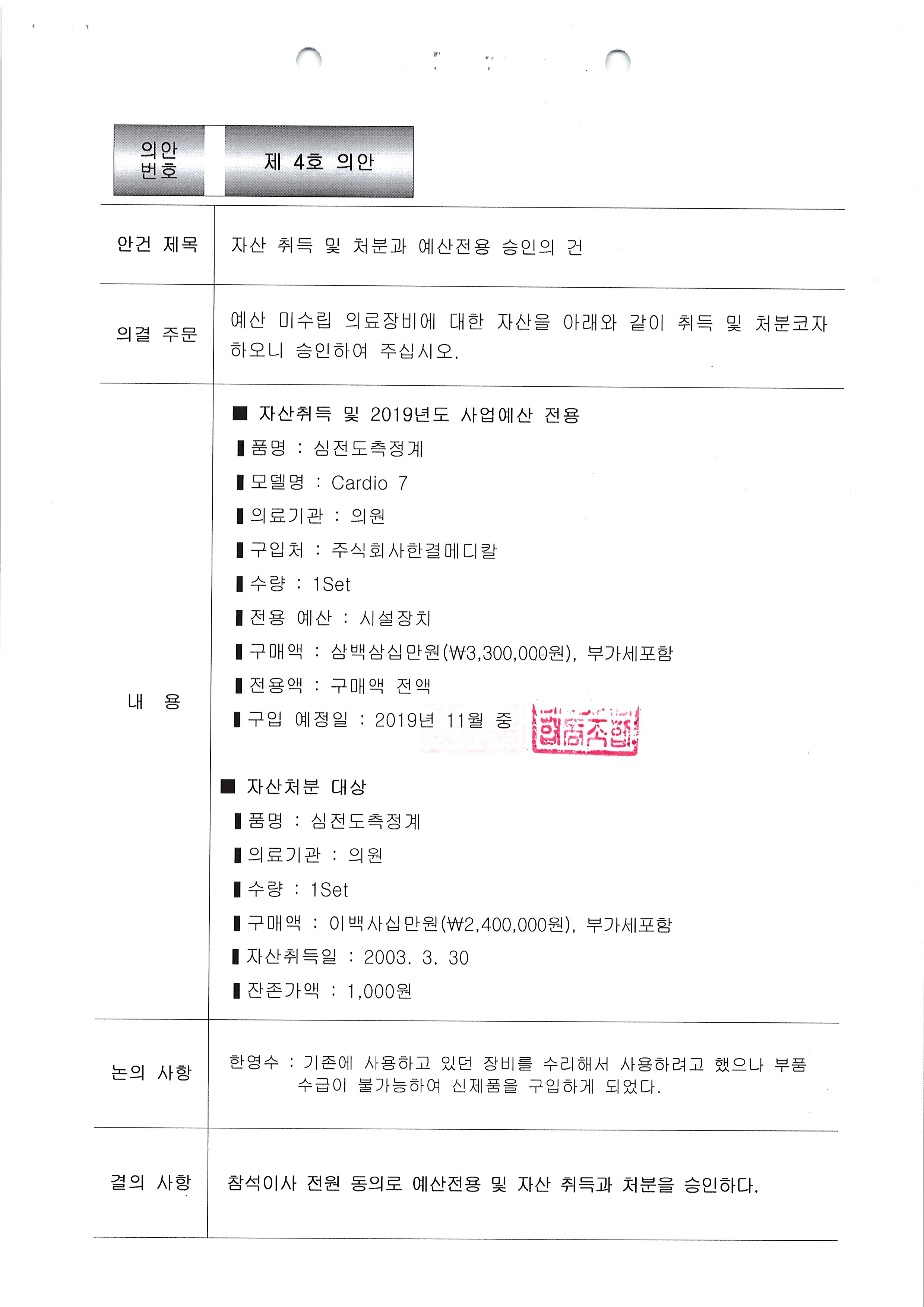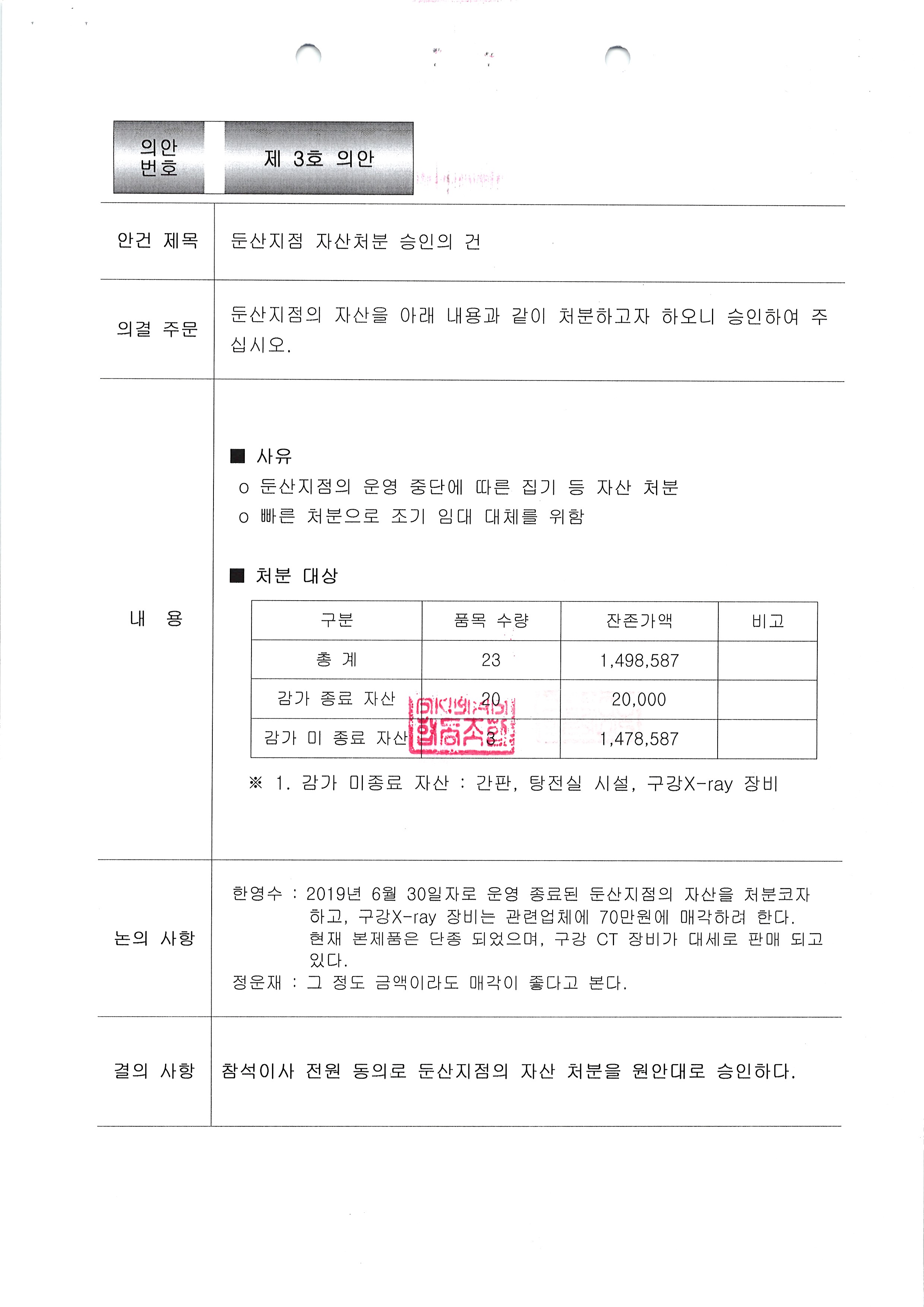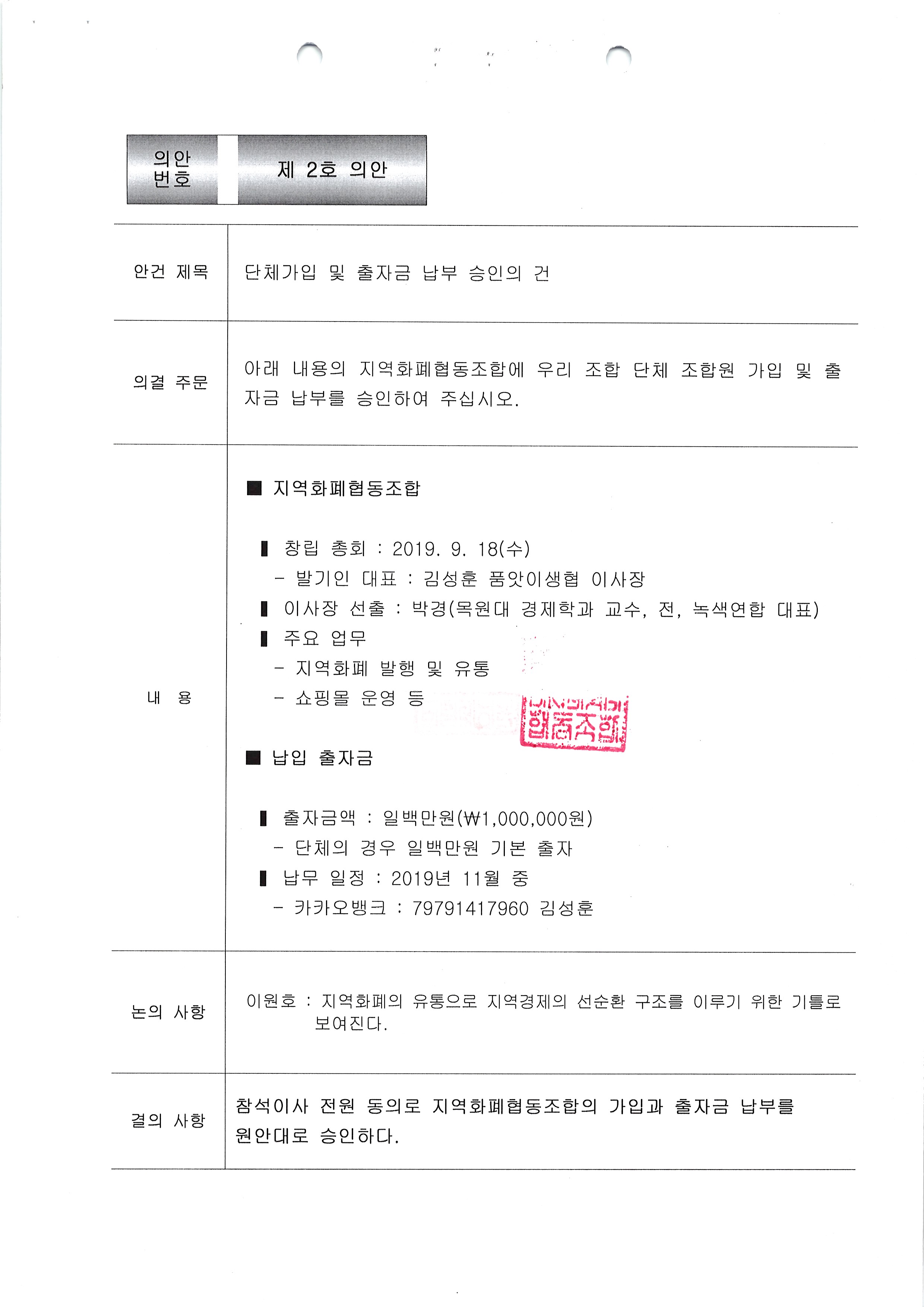 [2019-11] 임시이사회 결과보고