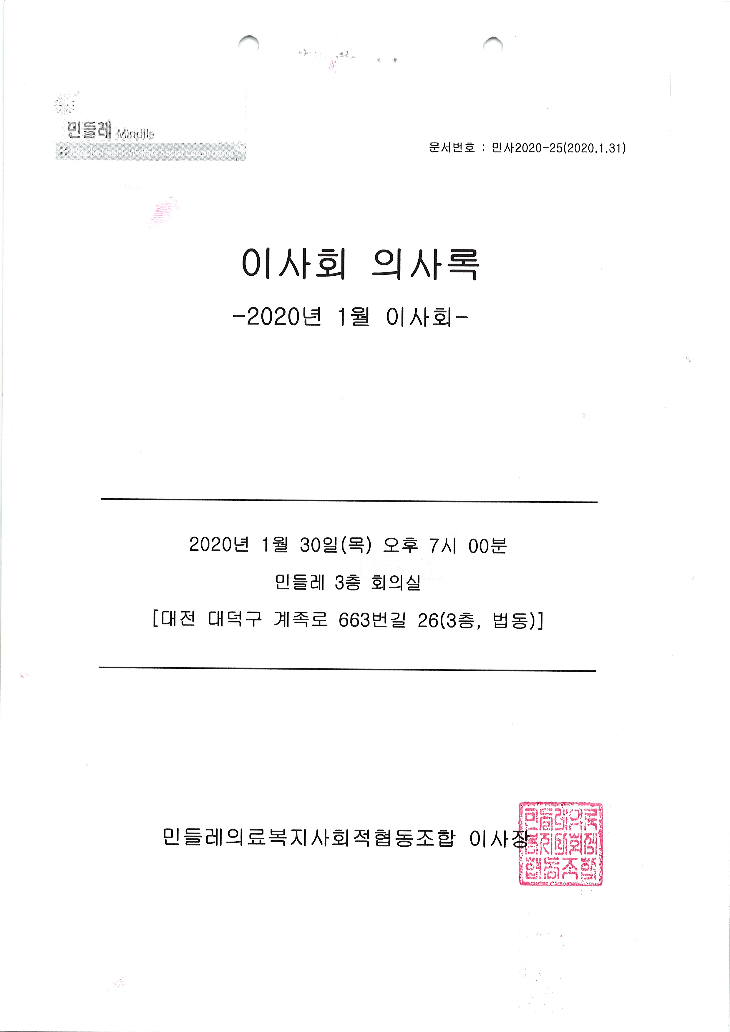[2020-01] 임시이사회 결과보고