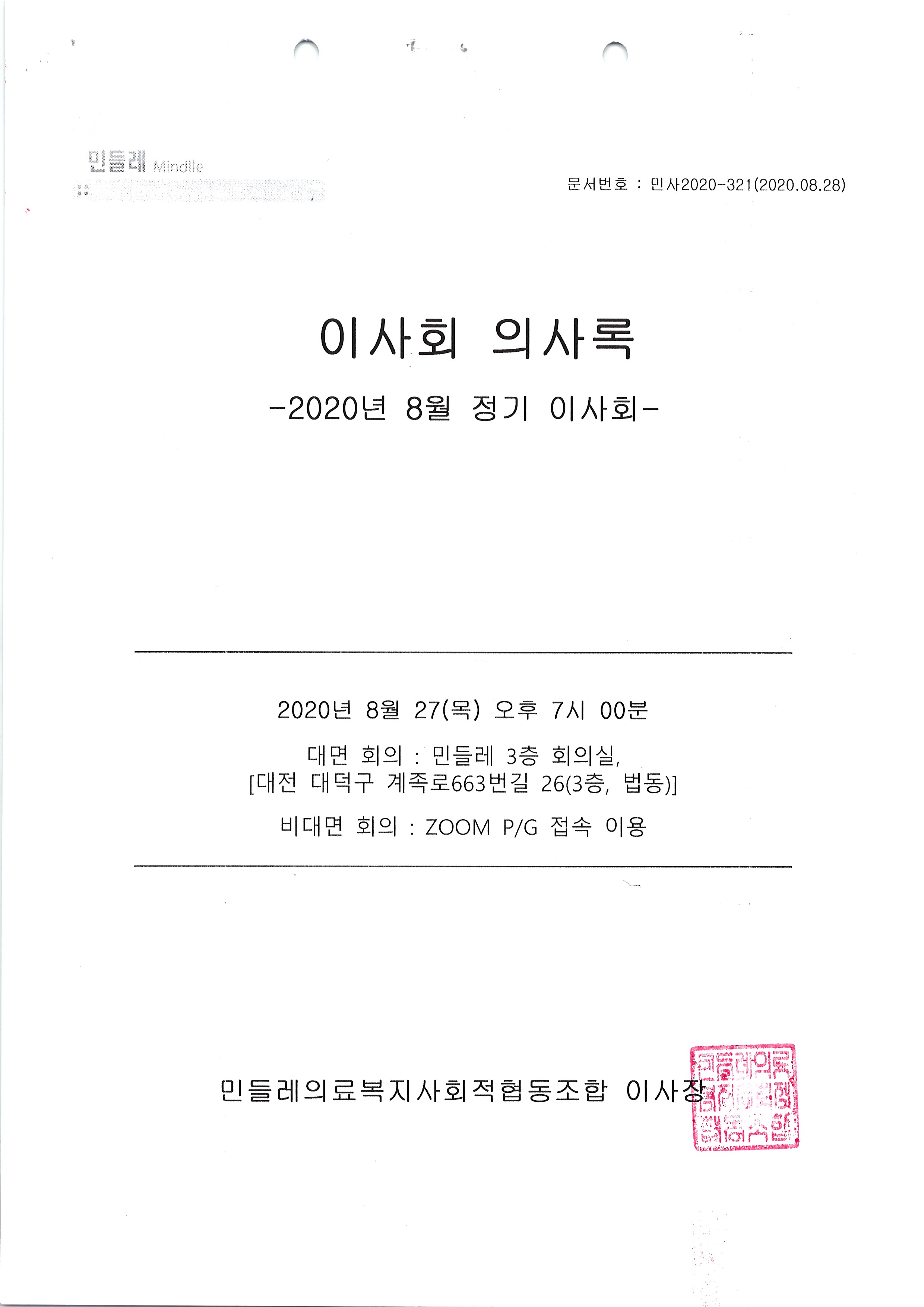 [2020-08] 정기이사회 결과보고