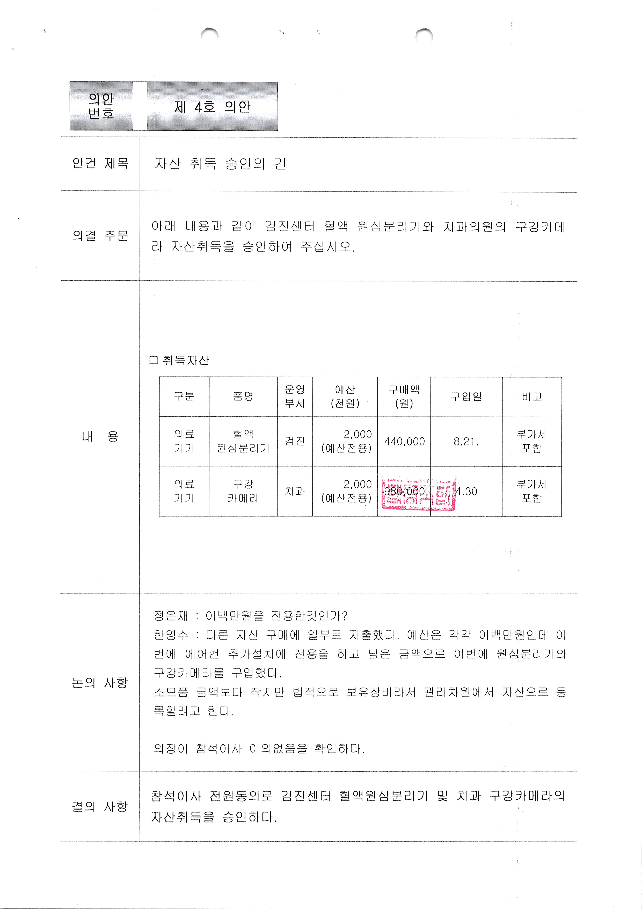 이사회회의록