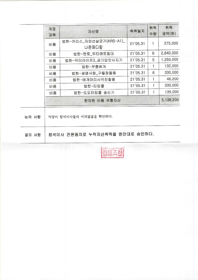 [2021-08] 정기이사회 결과보고