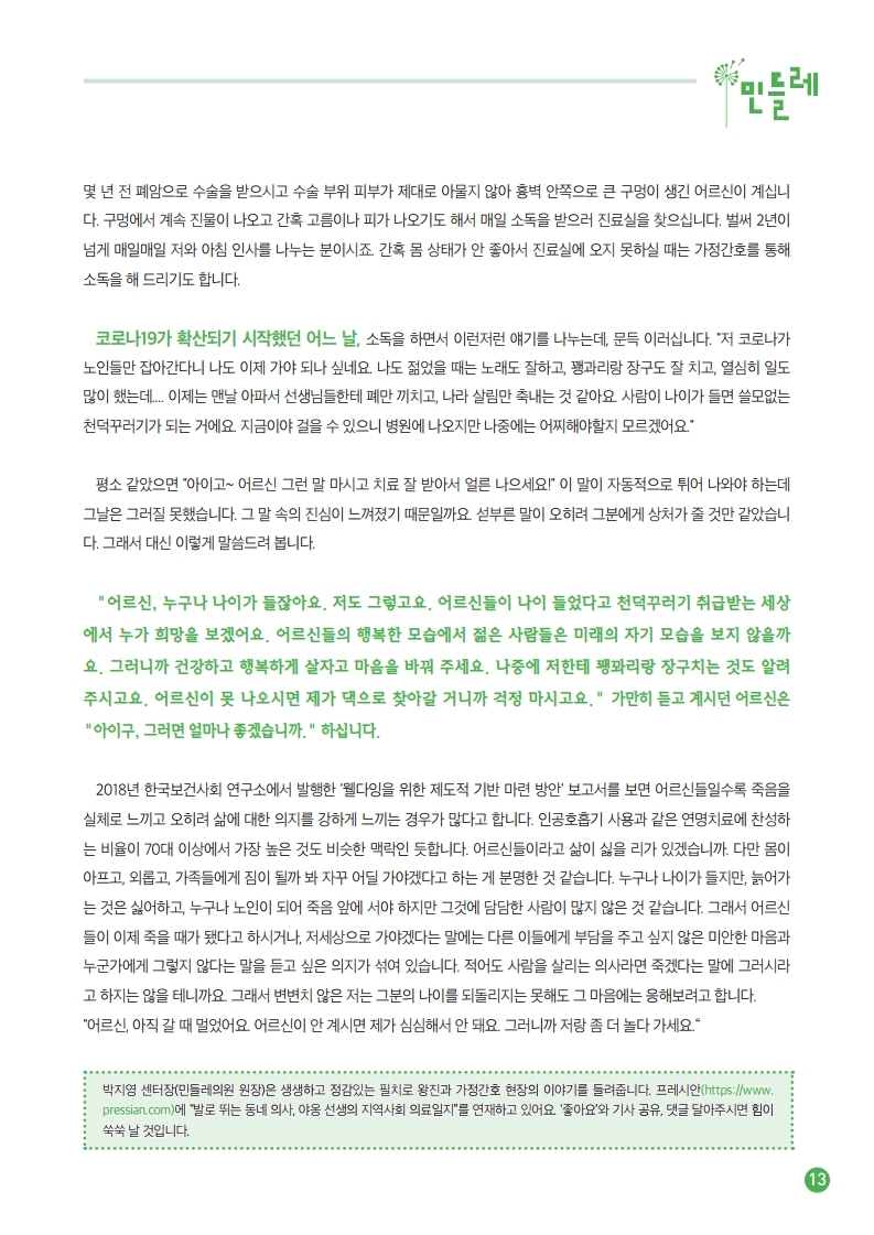 민들레의료복지사회적협동조합(mindlle)
