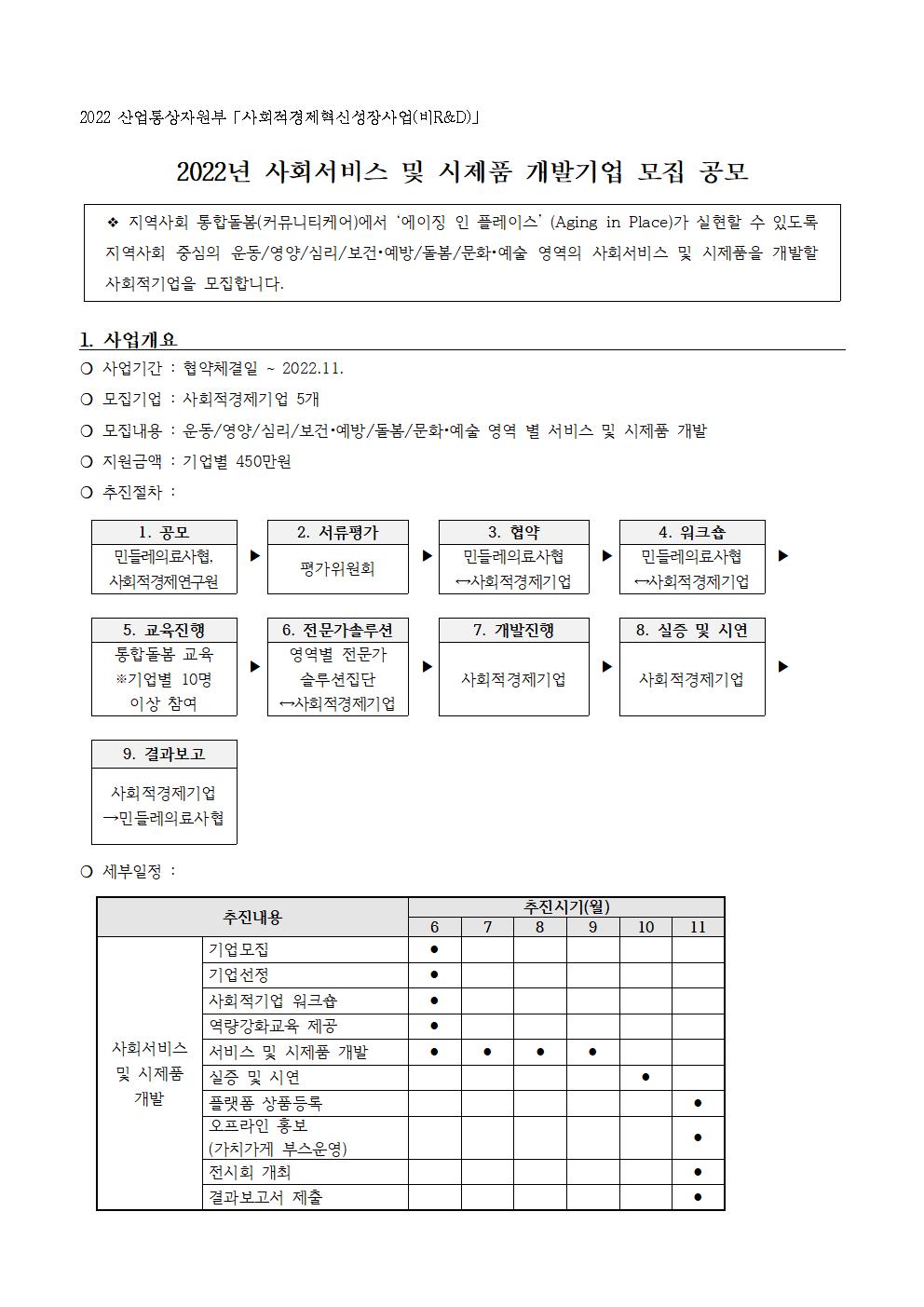 [마감] 2022년 사회서비스 및 시제품 개발기업 모집 공모