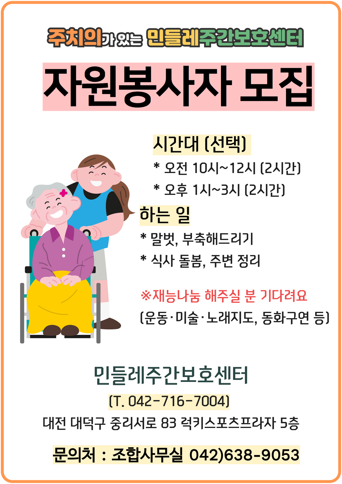 주간보호센터 자원봉사자 모집