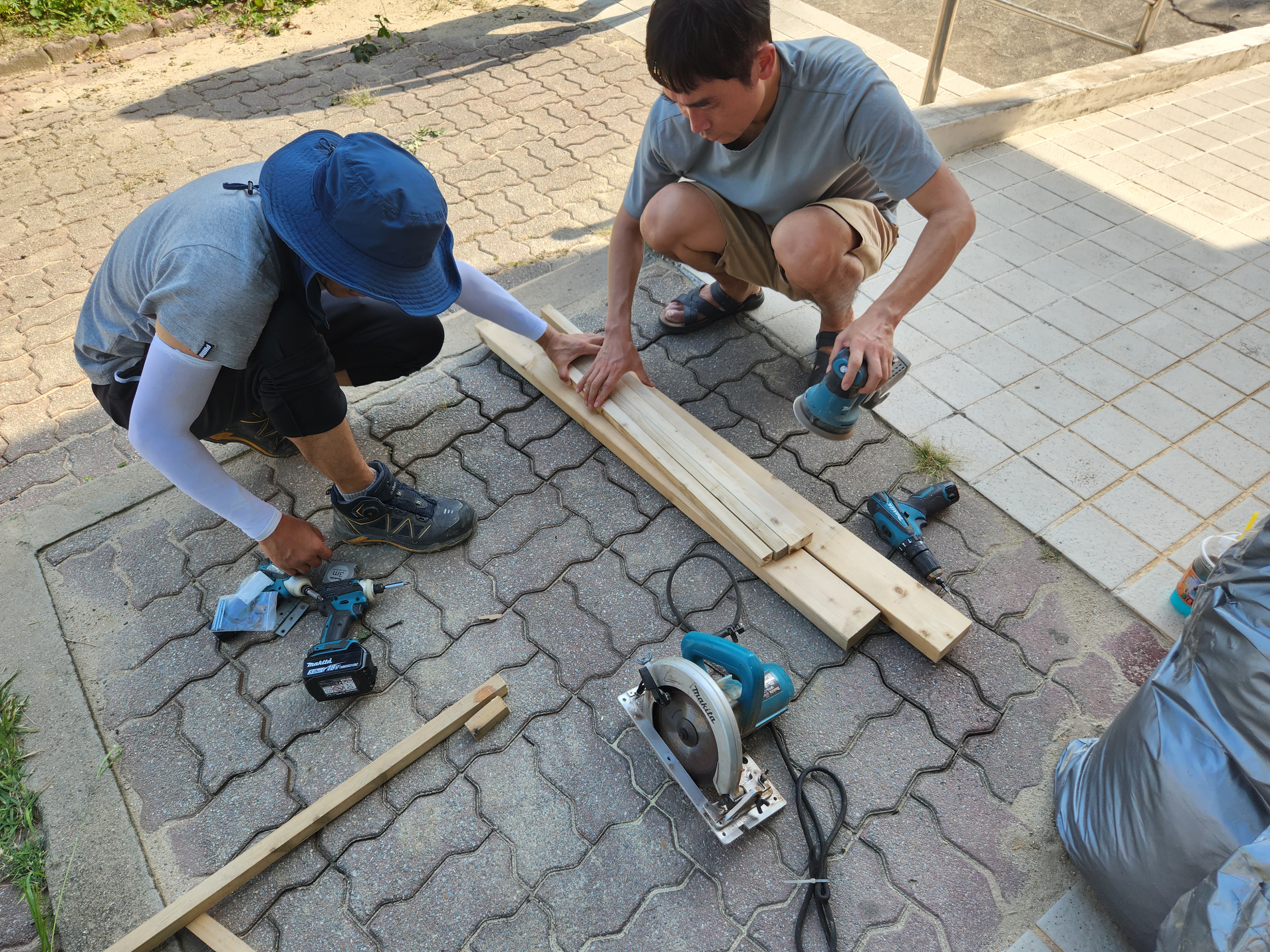 어린이집 토끼장 수리 등 목공작업을 함께 실시